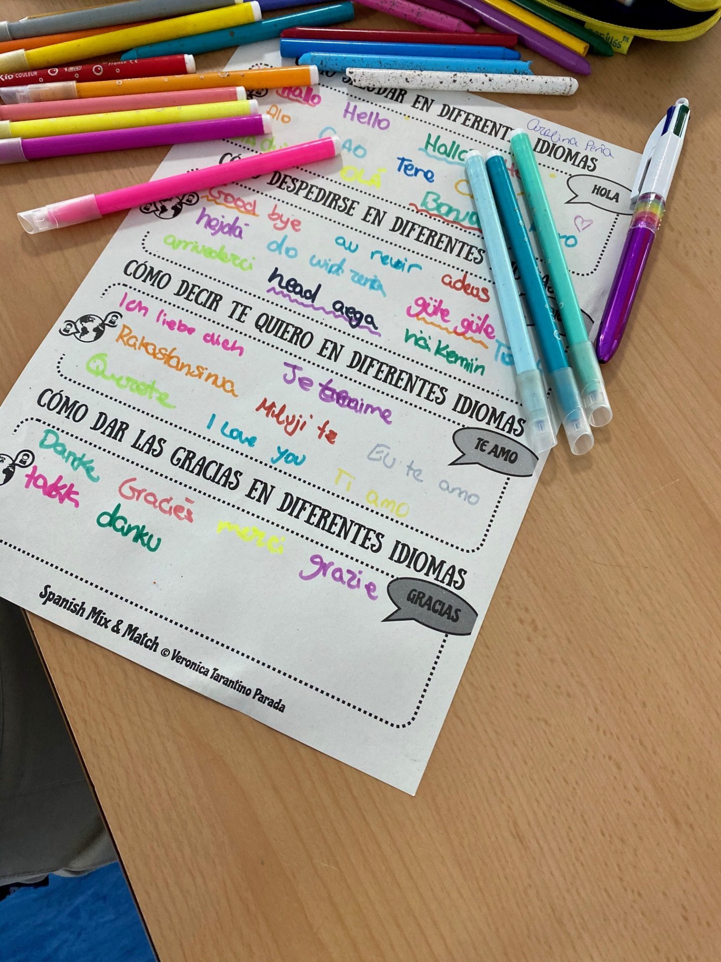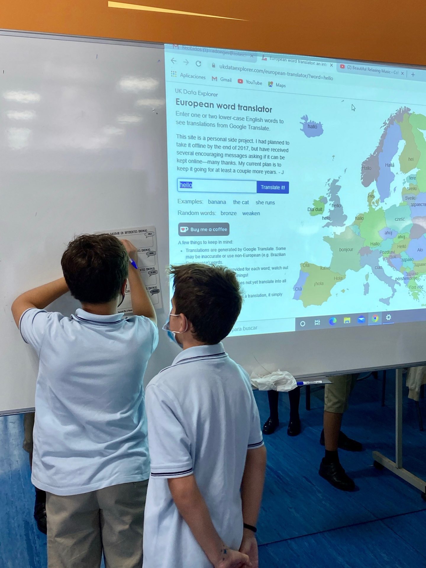 Los alumnos de 6º de Primaria han aprendiendo a decir algunas palabras en diferentes idiomas usando un traductor especializado para ello. Por ejemplo, cómo saludar, despedirse, decir «te quiero» y dar las gracias en inglés, alemán, italiano o euskera, entre otros idiomas. Por su parte, los alumnos con Alemán como primer idioma han podido debatir y elegir su actividad.