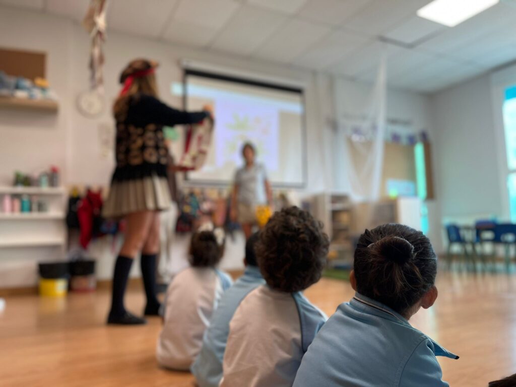 Entre todas ellas, una de las más esperadas es, sin duda, el tradicional cuentacuentos del Día de la Hispanidad, protagonizado por los alumnos de 4º de ESO y destinado a los más pequeños de Infantil (4 y 5 años). Esta actividad, que ya se ha convertido en una tradición dentro del Colegio, representa la esencia del aprendizaje compartido: los mayores asumen el papel de guías y narradores, mientras que los pequeños se convierten en entusiastas oyentes, curiosos y llenos de ilusión.
