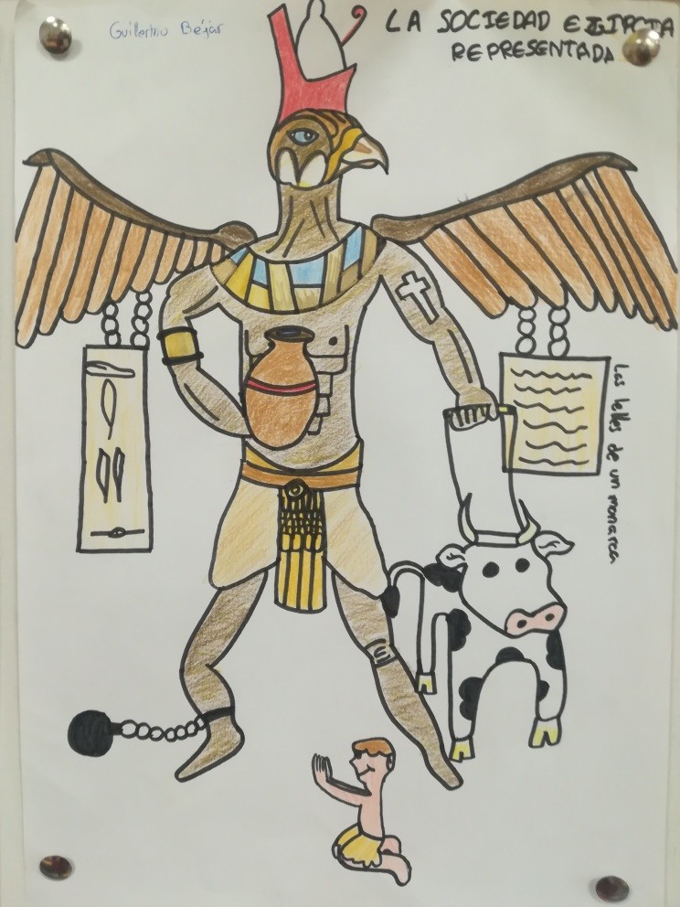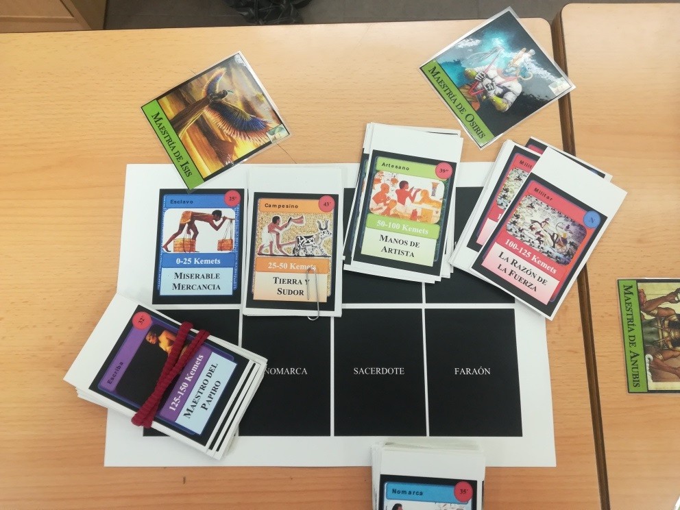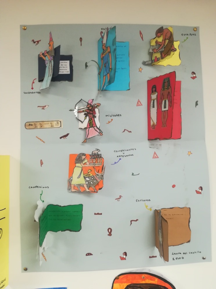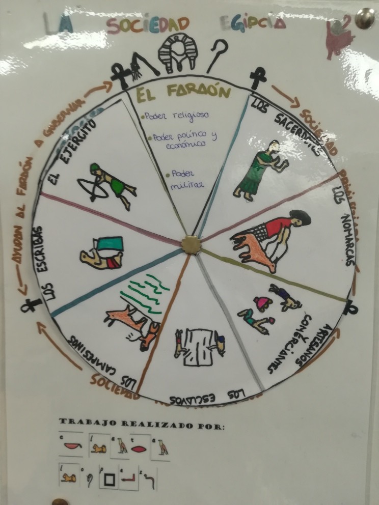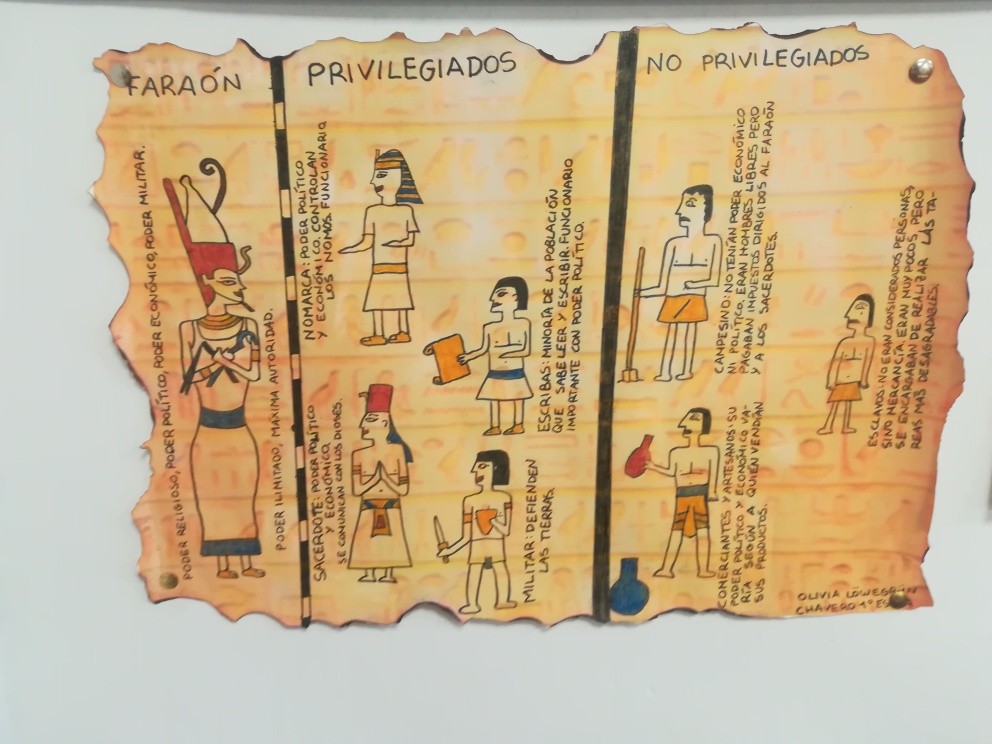 Este curso los alumnos de 1º de ESO se han sumergido de lleno en el Antiguo Egipto, con una única misión: encontrar la tumba de Nefertiti. Para ello deberán conseguir llegar a ser faraones, pero no les será fácil porque comienzan siendo esclavos, el grupo social más bajo de todo Egipto y solo con trabajo duro logran subir de escalafón social. Según vamos avanzando con el temario, los dioses egipcios van poniéndoles a prueba y recompensándoles justamente. Los alumnos trabajan las diferentes categorías sociales, a través de un juego de rol y acumulan puntos/kemets con los que ascienden de categoría. ¿Llegará alguno a ser faraón? ¿Se resolverá finalmente el misterio de Nefertiti?