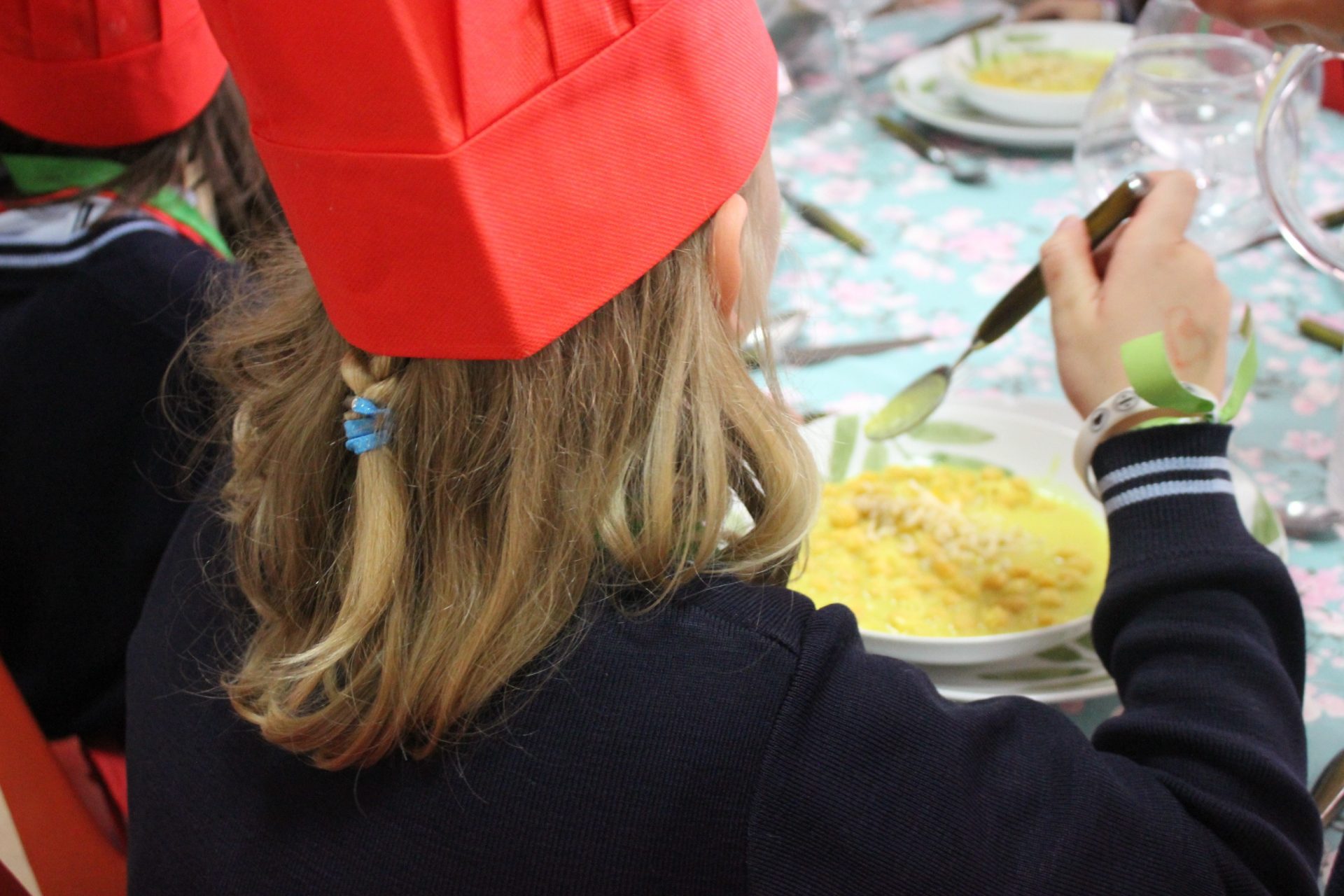 Realizado junto a Serunion, nuestra empresa del comedor, una «Comisión del Comedor» integrada por niños de primero a sexto de Primaria, probó también el plato y anotó sus opiniones en un cuestionario que posteriormente es analizado para tener en cuenta en la elaboración de futuros platos del comedor.
