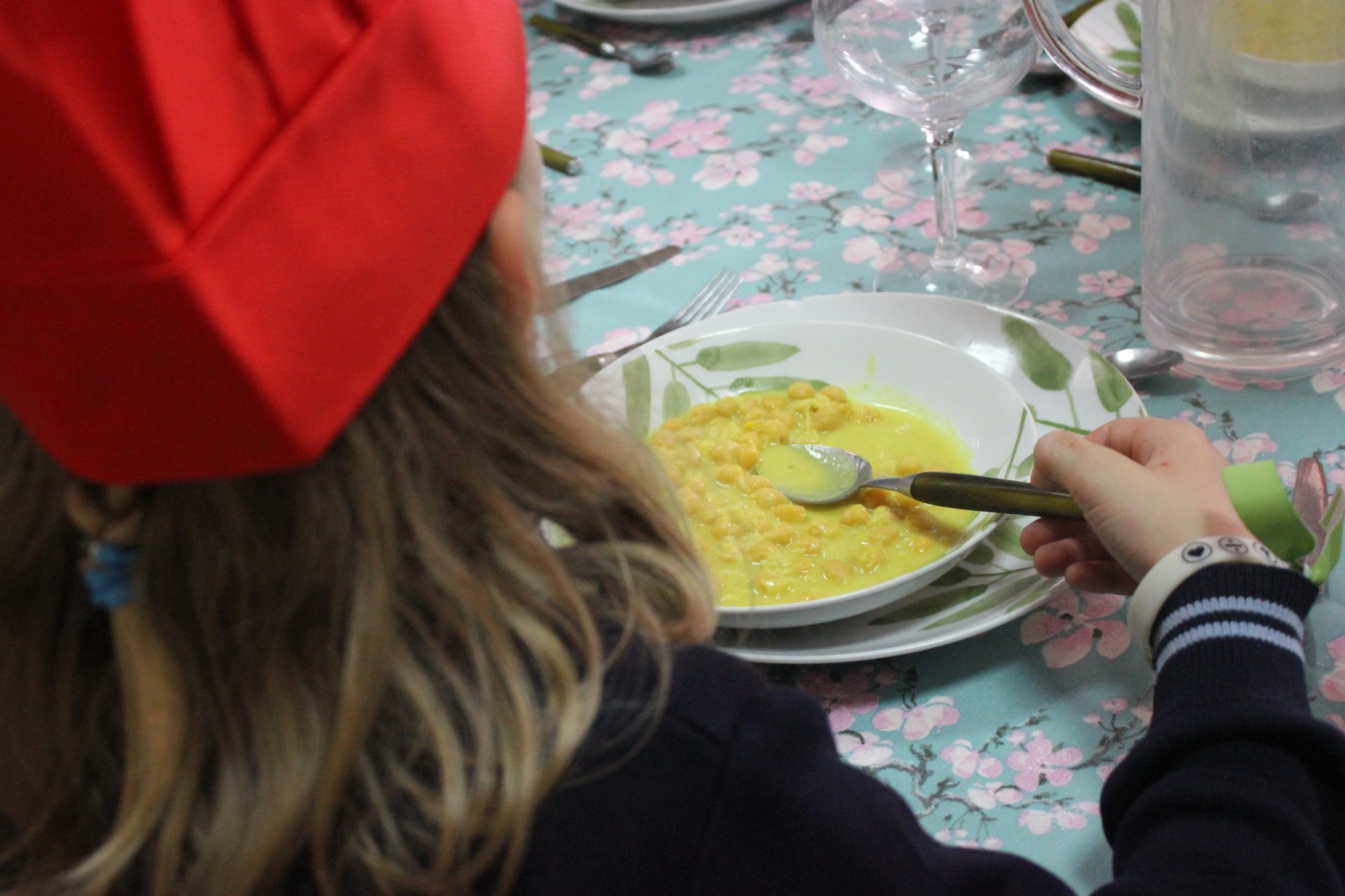 En esta ocasión, el plato elegido ha sido garbanzos al curri con trigo. Este curso probarán también otro plato con base de verduras y otro de pescado.